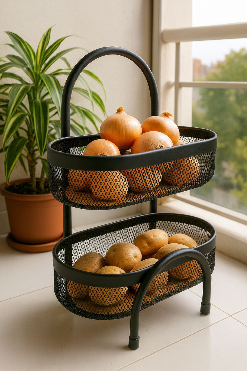 سبد سیب زمینی و پیاز توری فلزی مدل بیضی